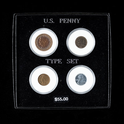 comprising: 1831 Coronet Head, 1878, 1882, 1885 (x2), 1899 Indian Head examples a 1909: VDB and 1932 Lincoln examples and a four-coin type set.