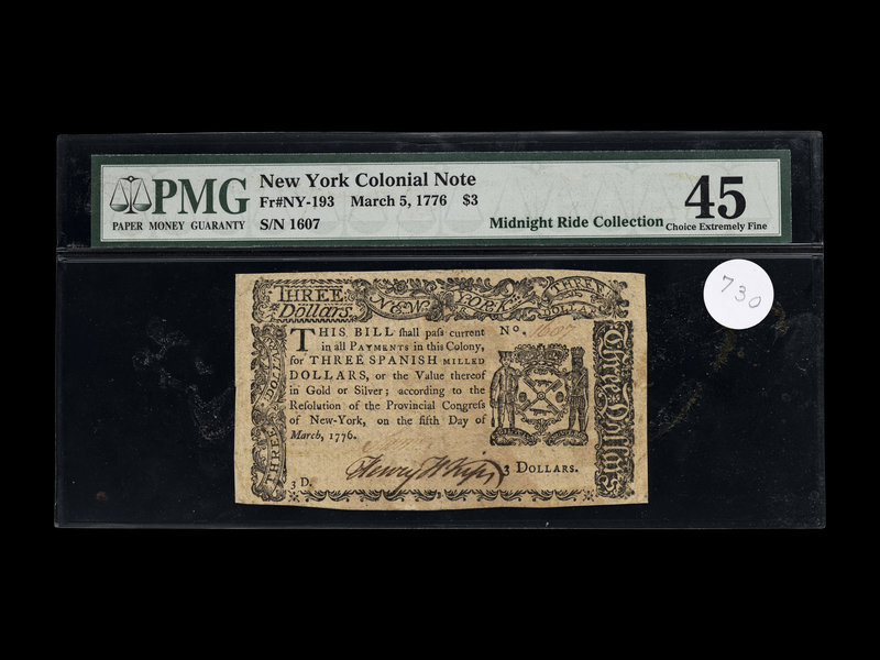 A New York March 5, 1776 $3 Note (PMG XF45) [Fr. NY-193]