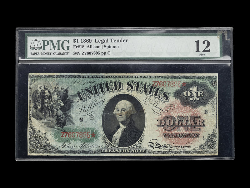 A Series 1869 $1 Rainbow Ace Legal Tender Note (PMG F12) [Fr. 18]