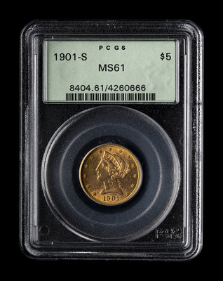 A 1901-S Liberty Head $5 Gold Coin (PCGS MS61)