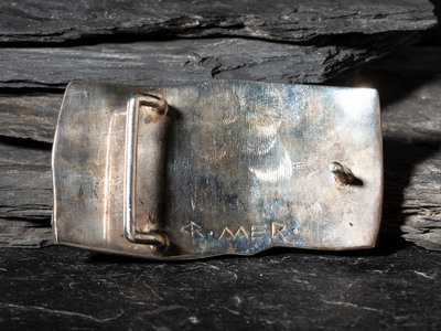 buckle length 3-1/2 inches x width 1-7/8 inches, belt width 1-1/4 inches, weight 85.0 dwt.