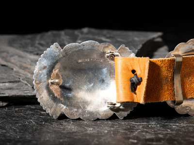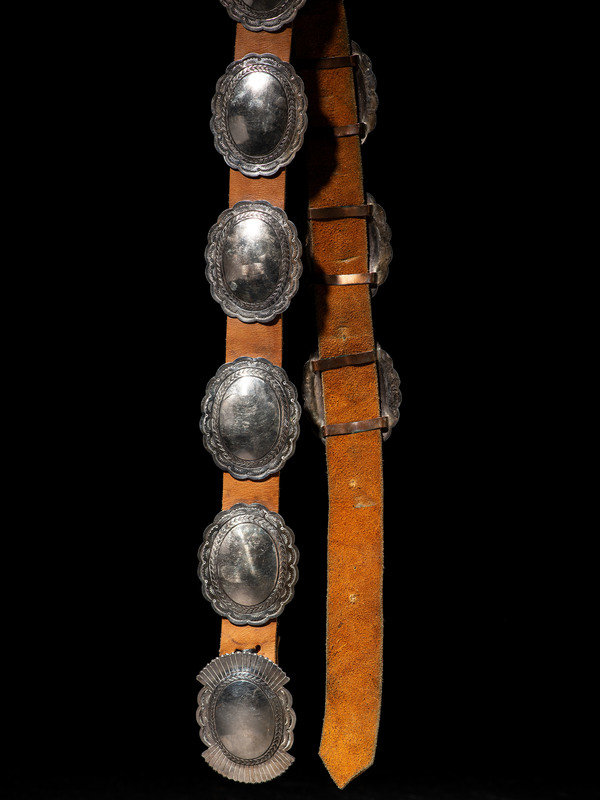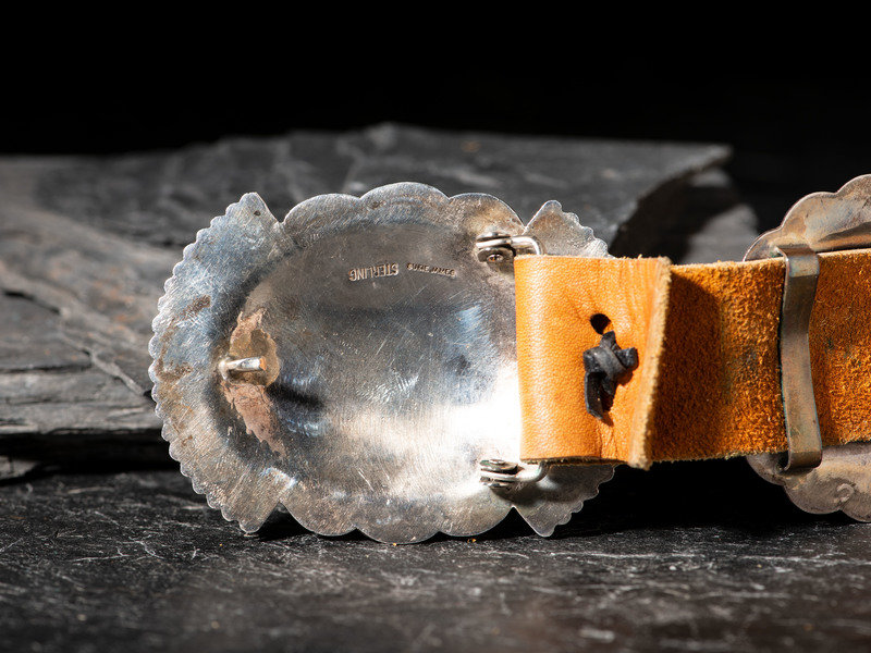 nine conchas and matching buckle; signed SUZIE JAMES and marked STERLING