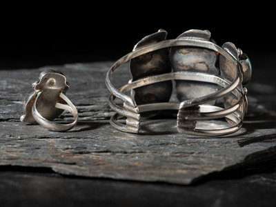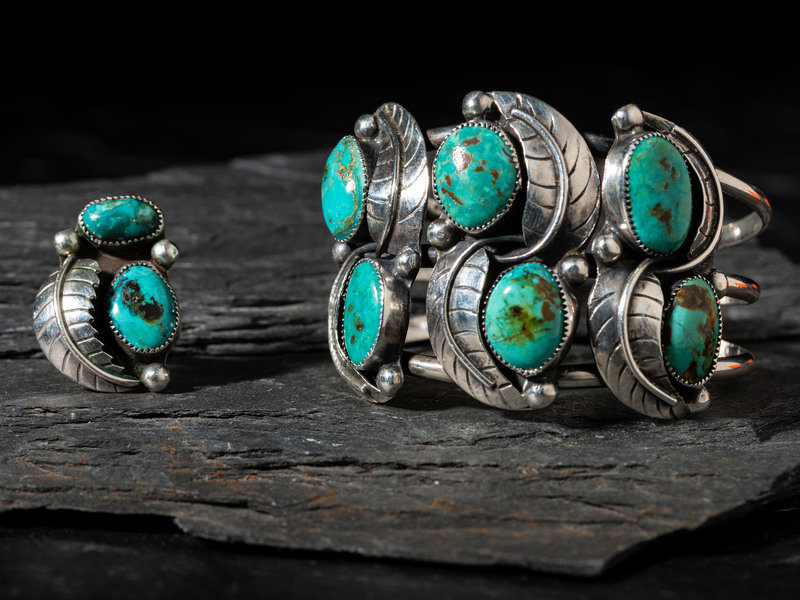 Navajo Silver and Turquoise Cuff Bracelet and Ring