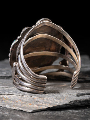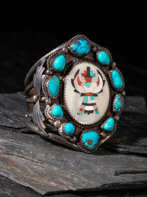 Zuni Silver, Turquoise, Mosaic Inlay Knifewing Cuff Bracelet