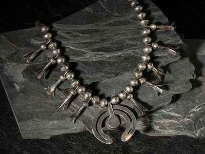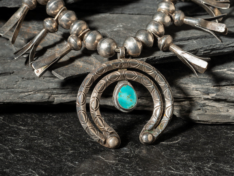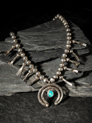 Navajo Silver and Turquoise Squash Blossom Necklace