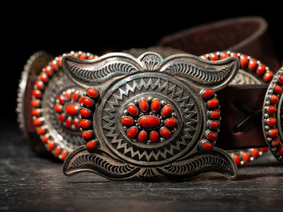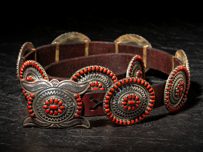 Sterling Silver and Coral Cluster Concha Belt
