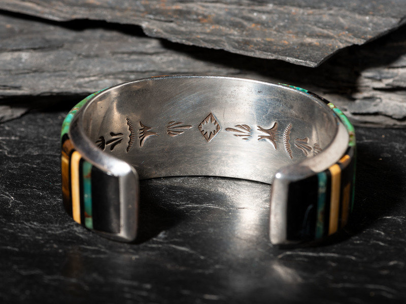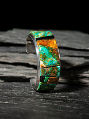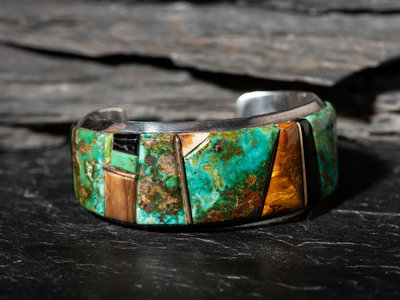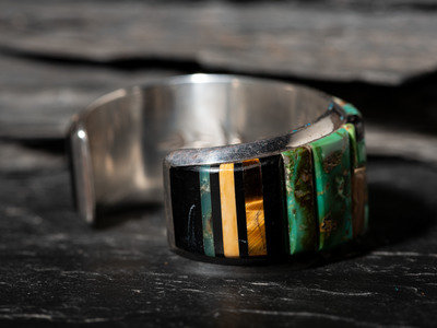 Sterling Silver and Cobblestone Inlay Cuff Bracelet