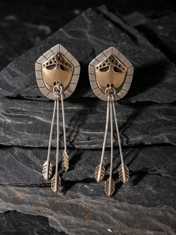 Sterling Silver and 14K Gold Maskette Post Earrings, 1996