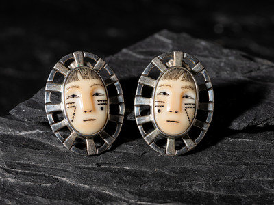 Sterling Silver Maskette Post Earrings, 1992