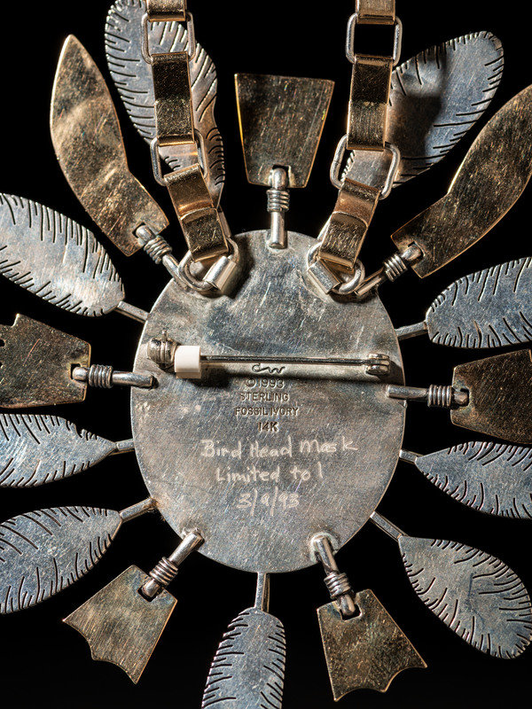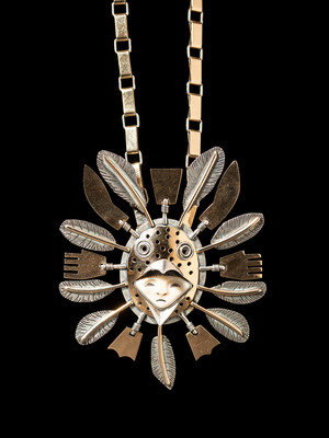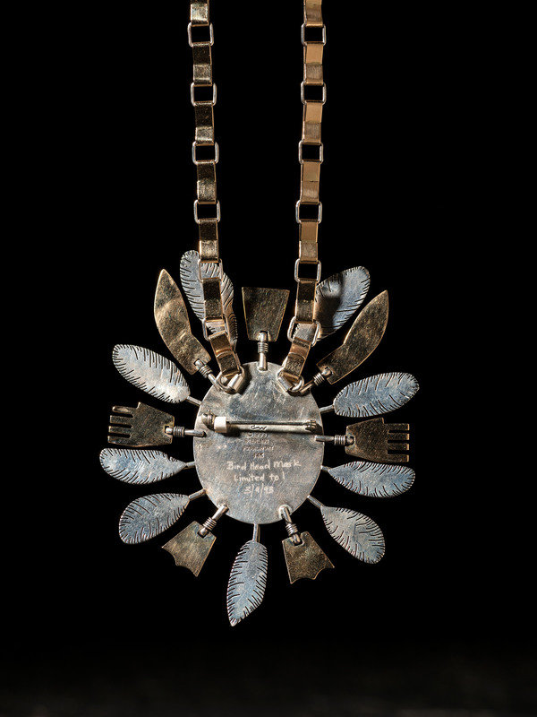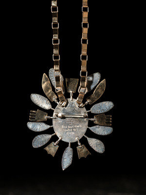 with removable link chain, the pendant can form a pin; signed, dated, titled, and editioned on reverse