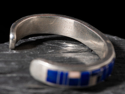 a cuff bracelet marked STERLING and faintly etched ROSE ANN LONG