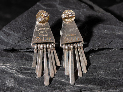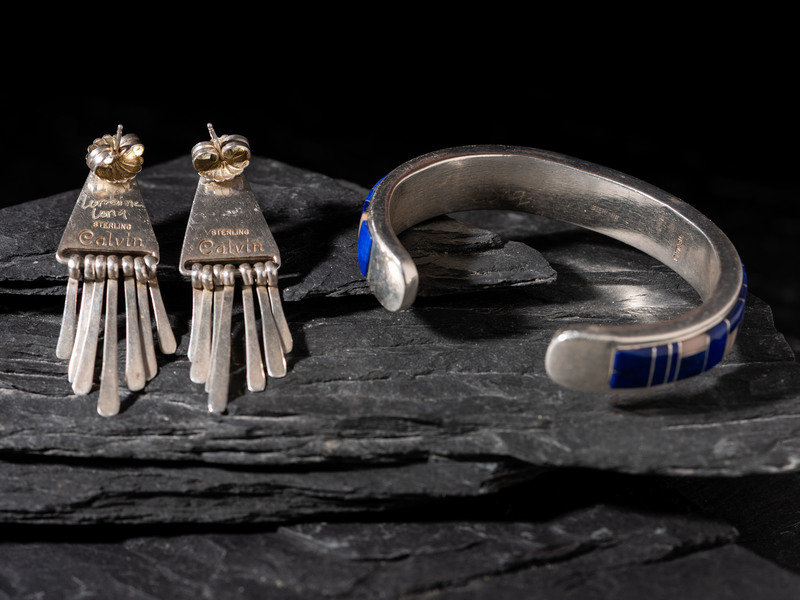 Navajo Sterling Silver and Lapis Channel Inlay Cuff Bracelet and Post Earrings