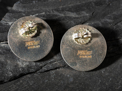 pair of post earrings with channel inlay; mark with Knifewing Segura's hallmark and STERLING