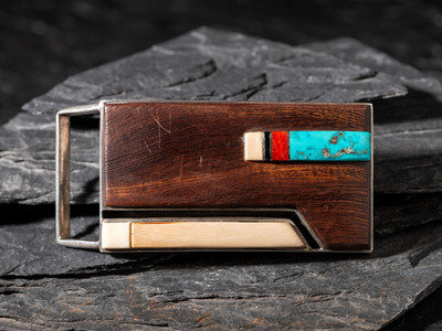 Sterling Silver and Mosaic Inlay Belt Buckle, with 14K Gold Spacers