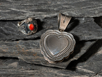 Sterling Silver Heart-shaped Locket and Coral Ring