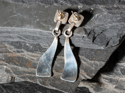 a pair of post earrings marked STERLING SW for Selena Warner