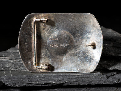 length 3 inches x width 2-1/8 inches, belt width 1-1/2 inches, weight 30.5 dwt.