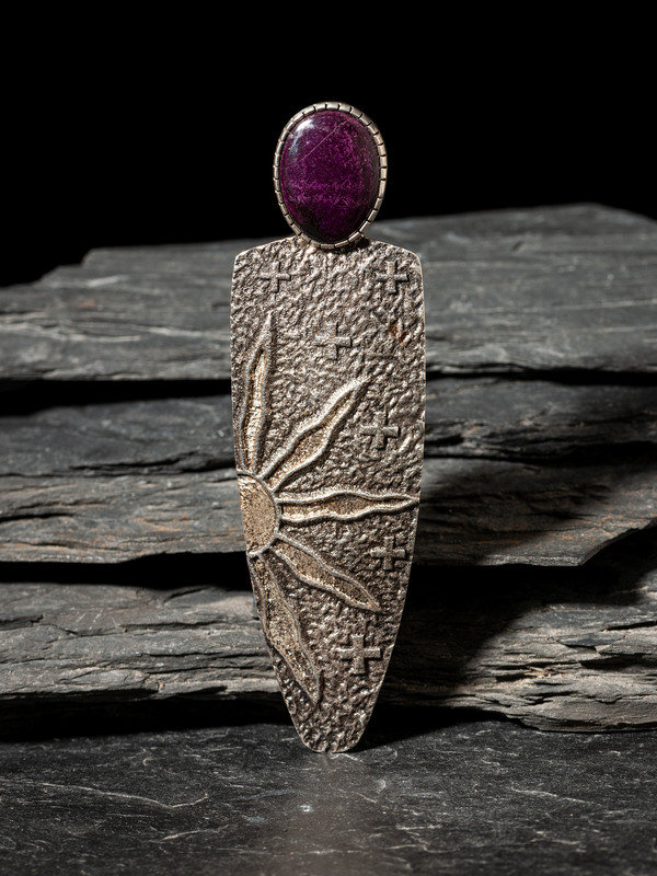 Sugilite and Sterling Silver Tufa Cast Figural Pendant