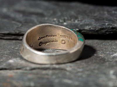 one with channel inlay turquoise; signed LONN PARKER ORIGINALS and marked STERLING