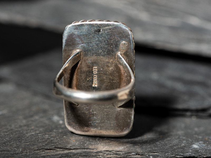 one with twisted wire bezel set with turquoise and lapis; signed LEO CORRIZ