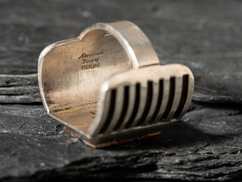 a channel inlaid example; signed ABRAHAM BEGAY and marked STERLING