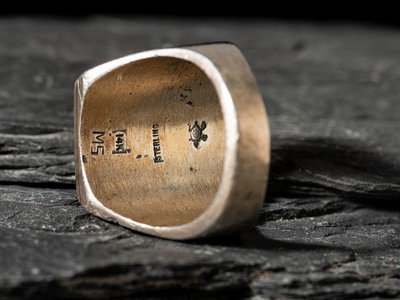 a silver and gold example with a bear overlay design; marked MS 14K STERLING along with a turtle hallmark