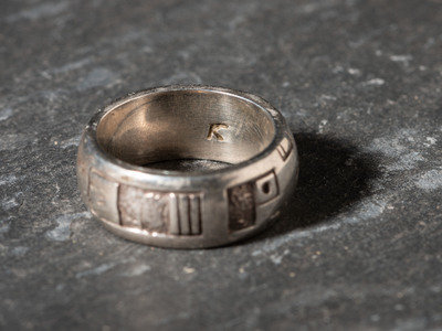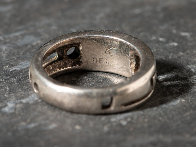 width 1 inch, interior circumference 5-1/2 inches x gap length 1-1/8 inches, weight 50.7 dwt.
