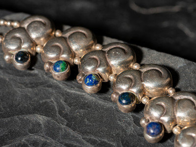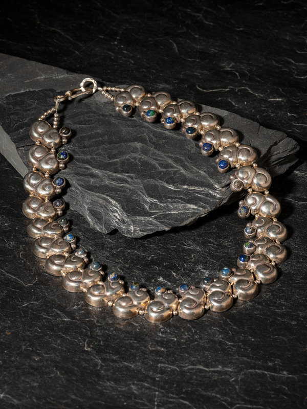 Taxco Sterling Silver and Chrysocolla Necklace, 1944-1946
