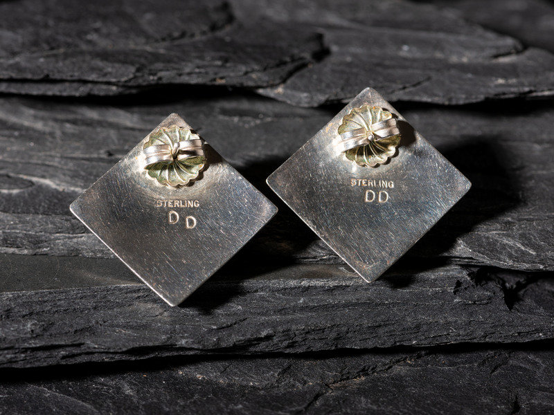 a pair of silver diamond-shaped post earrings; marked DD STERLING