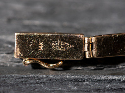 a gold ink bracelet; marked 14K and SS in an arrowhead hallmark