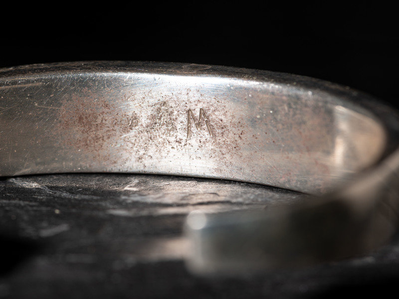 a silver cuff bracelet, marked M
