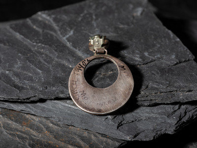 width 2-1/2 inches, interior circumference 5-3/4 inches x gap length 1-1/4 inches, weight 68.6 dwt.