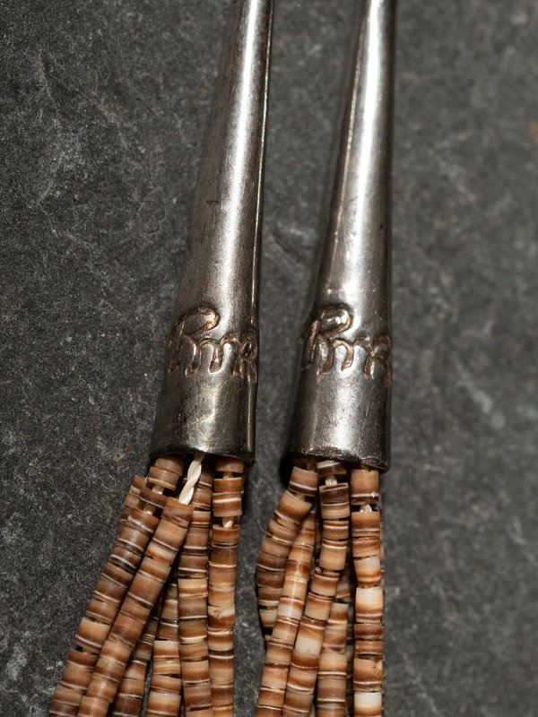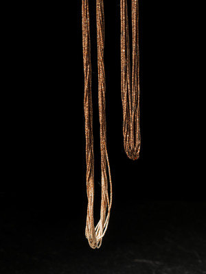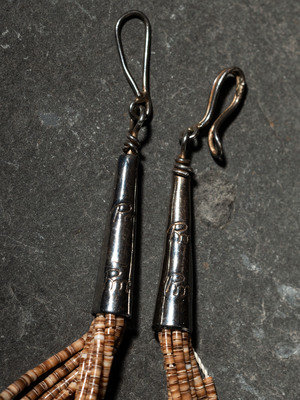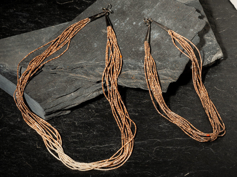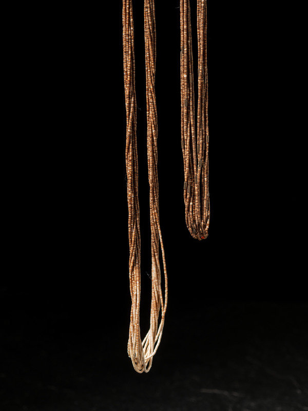 an eight-strand necklace, strung with brown heishi