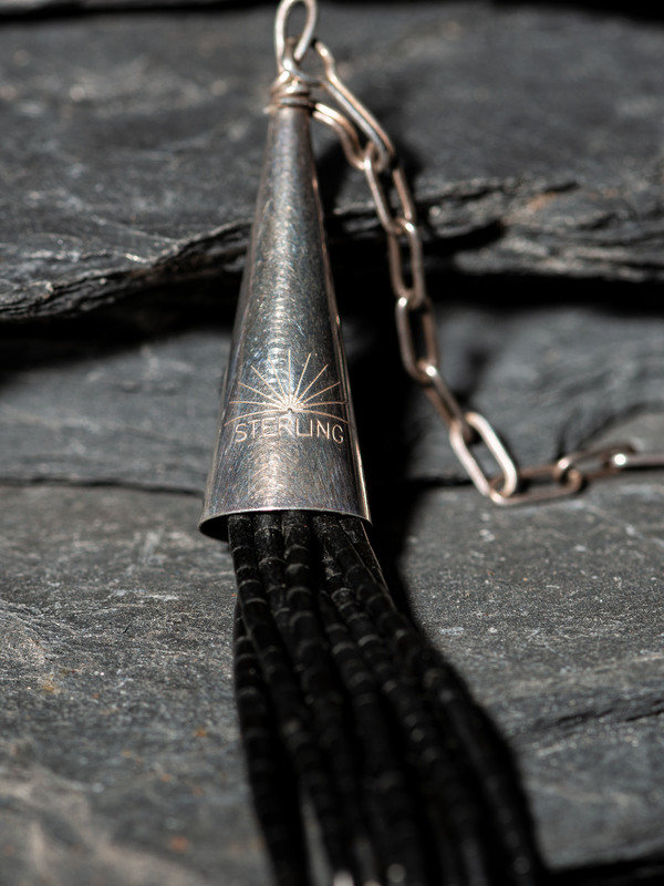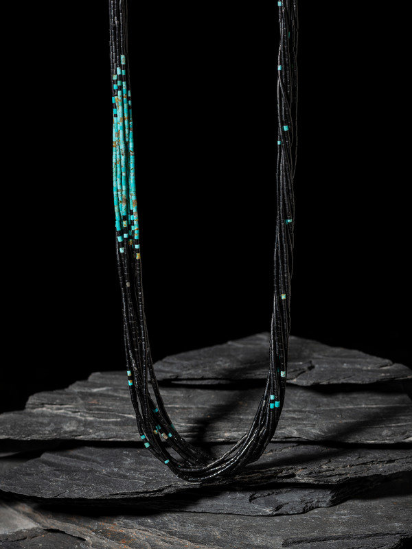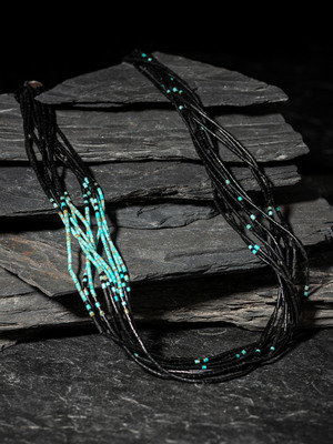 Rolled Turquoise and Onyx Ten-strand Necklace