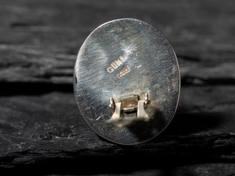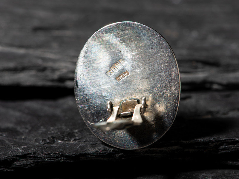 an oval pair, set with a single turquoise cabochon; marked GUNN 925