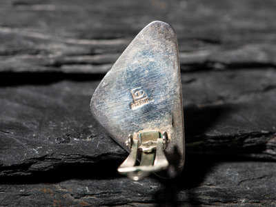 a triangular pair, set with sugilite and marked with a back-to-back DD STERLING