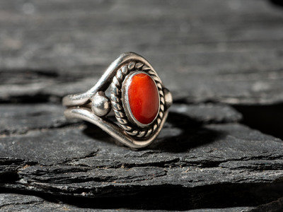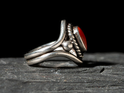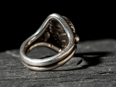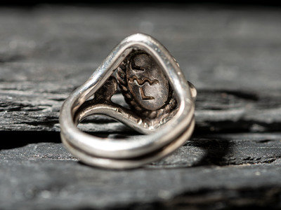 spit shank with twisted wire bezel; marked LL with artist's snake hallmark