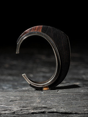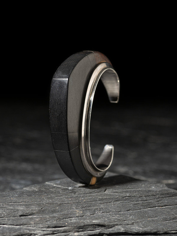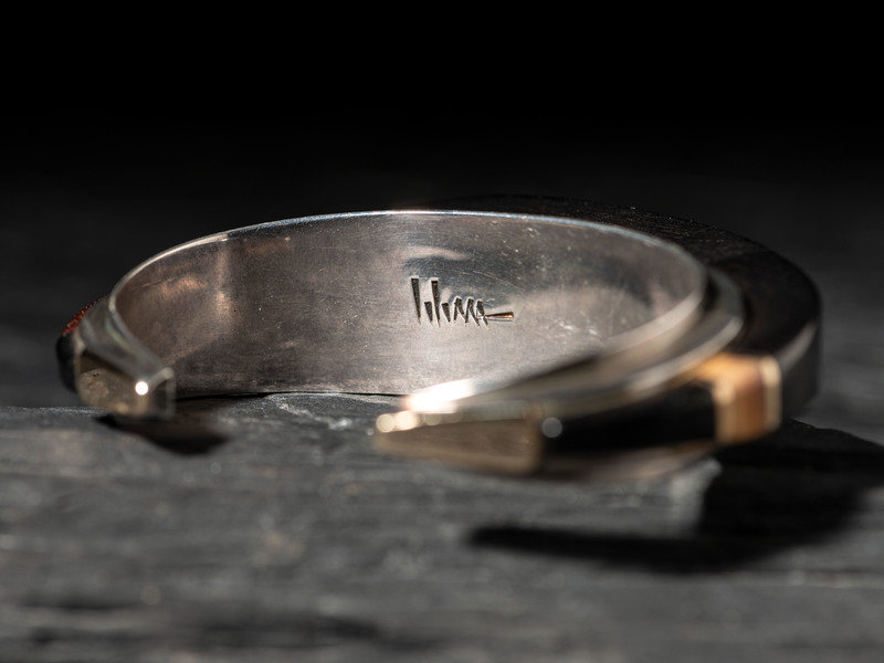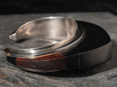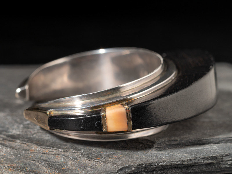 silver cuff, set with ebony and 14k gold spacers and end caps; signed LOLOMA