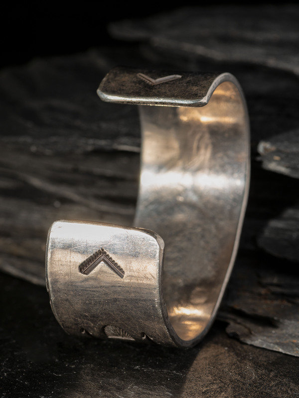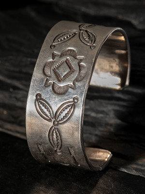 Early Navajo Heavily Stamped Ingot Silver Cuff Bracelet