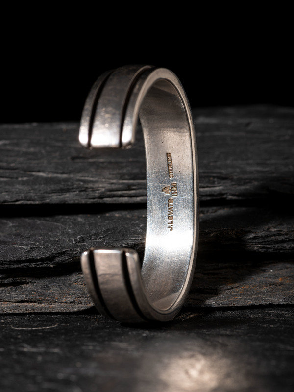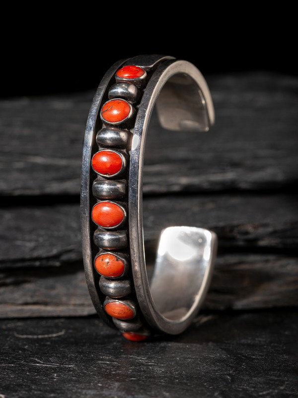 set with a row of seven cabochons; signed on back J. LOVATO and marked with artist's Thunderbird hallmark, IHM, and STERLING