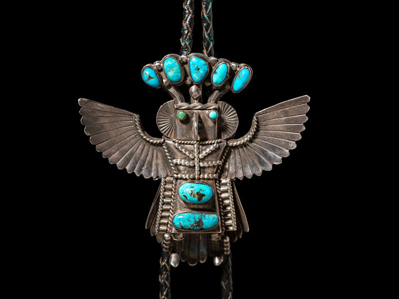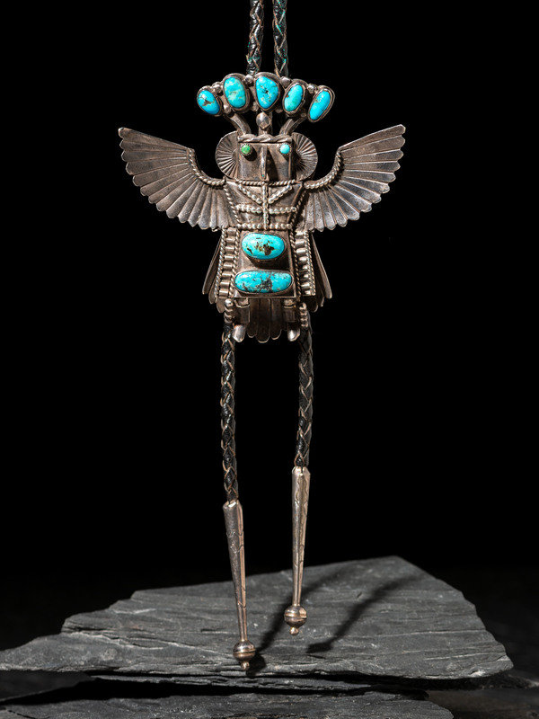 Silver and Turquoise Eagle Katsina Bolo Tie