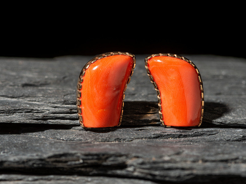 14K Gold and Coral Clip Earrings