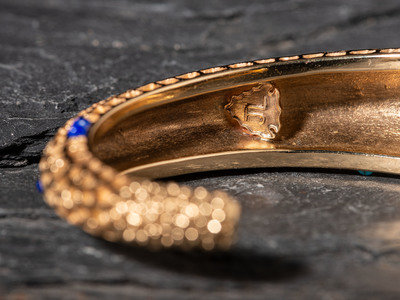 cuff width 3/4 inch, interior circumference 5-1/2 inches x gap length 1 inch, weight 42.9 dwt.