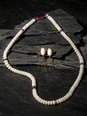 Single-strand White Coral Necklace, PLUS 14K Gold and Dolomite Clip Earrings