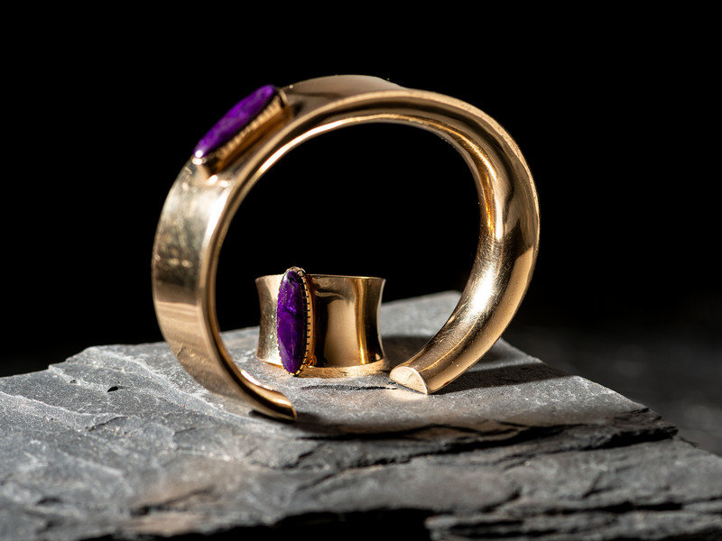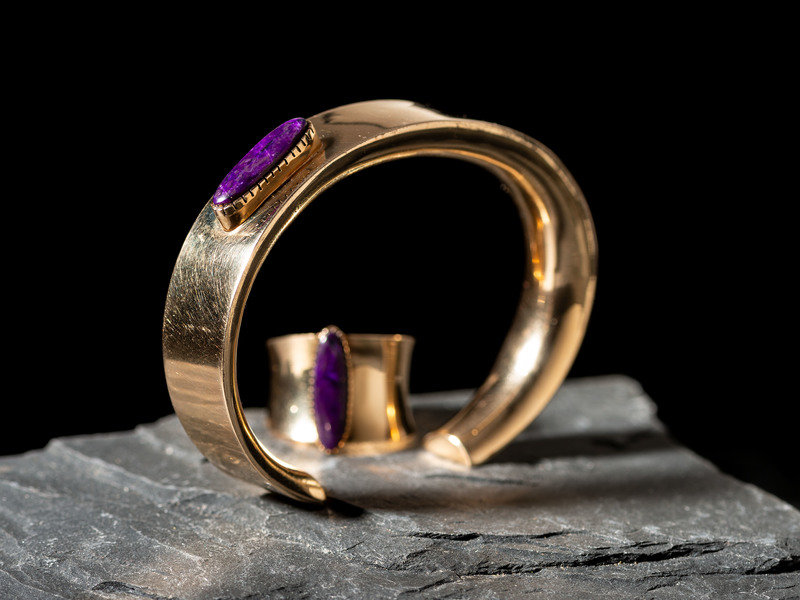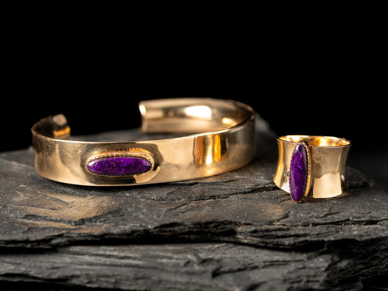 14K Gold and Sugilite Cuff Bracelet and Matching Ring