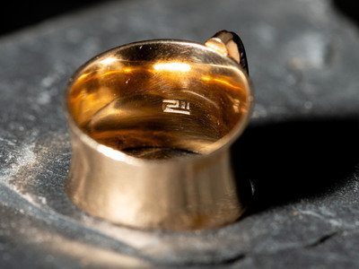 lot of 2, offset and tapered design; both marked with artist's conjoined RC hallmark, sizes include: