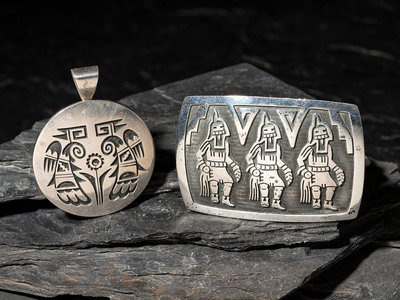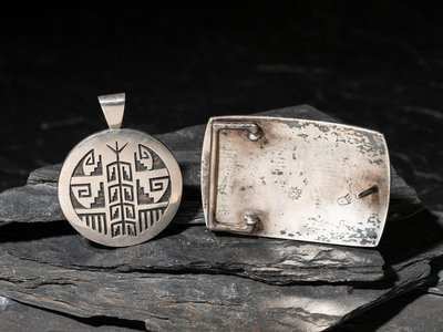 Silver Overlay Pendant and Belt Buckle