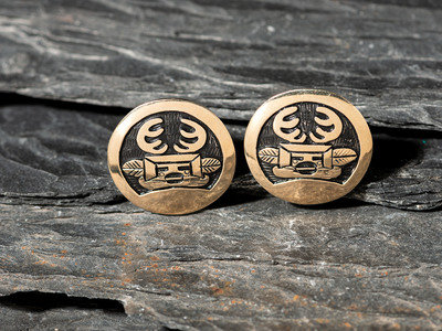 Sterling Silver and 14K Gold Overlay Katsina Post Earrings