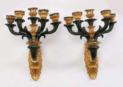GOOD PAIR OF LOUIS XV-STYLE GILT & PATINATED BRONZE WALL LIGHTS