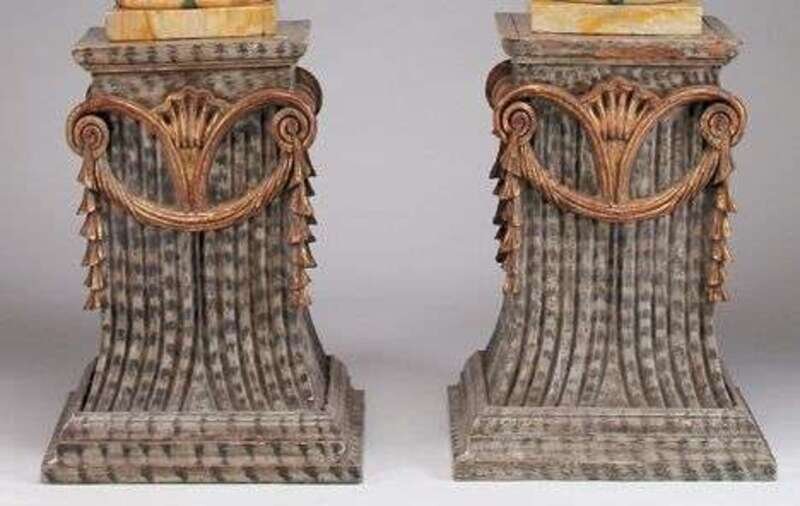 PAIR OF NEOCLASSICAL-STYLE PAINTED & PARCEL-GILT PEDESTALS